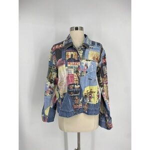 Chicos Design Classic Artistic Graphic Blend Button Down Jacket
