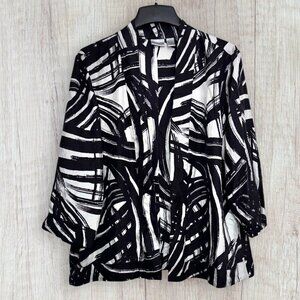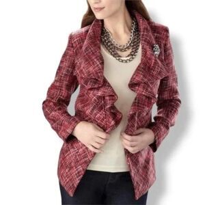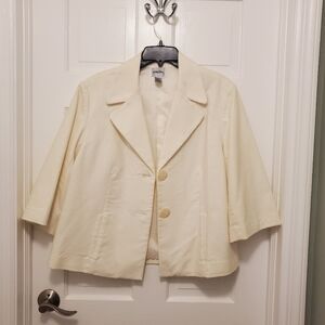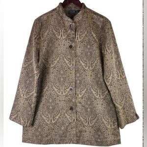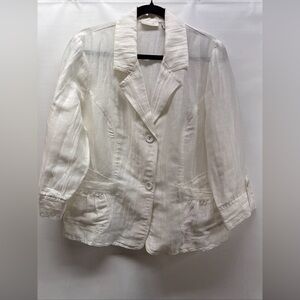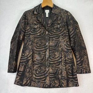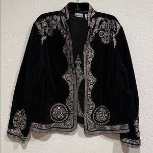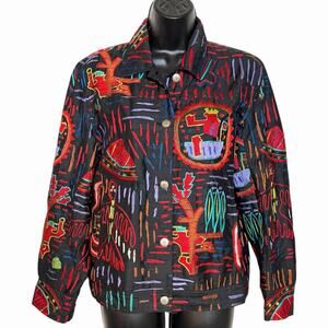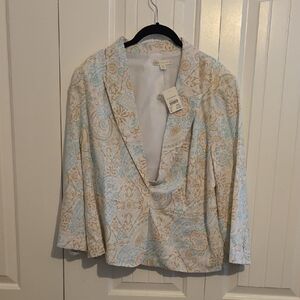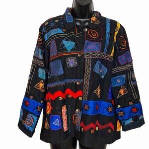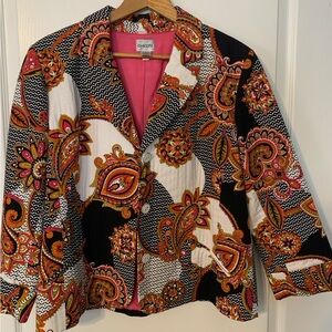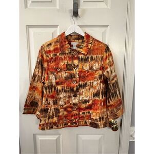 This is a very nice (like new) Chico's blazer. It has a southwestern style to it. Great with jeans or dress it up with slacks/skirt. So many colors too! Chico's size "0" is a 4.