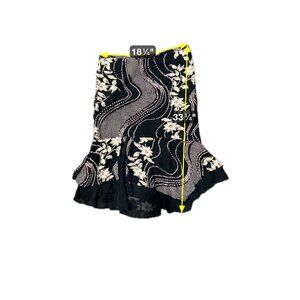 This skirt exhibits an elegant floral and dotted pattern with a stylish ruffle hem, making it a versatile addition to a professional wardrobe. Its lightweight rayon construction provides comfort and ease of movement, suitable for office wear or professional gatherings.