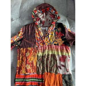 Chico’s Design Hooded Zippered Jacket Womens 2 (L) Cottagecore Floral
