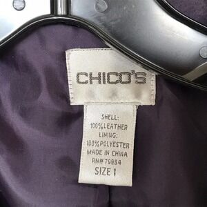 Chico's Design Jacket Sz1 Purple Suede Leather Designs Collar Button Front