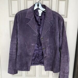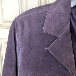 Chico's Design Jacket Sz1 Purple Suede Leather Designs Button Front Pre-Owned