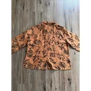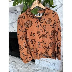 Chicos Design Linen Top Women's Brown and Black Long sleeve