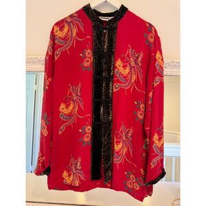 Chico’s Design Red Asian Inspired Silk Blend Tang Kimono Jacket Size 0