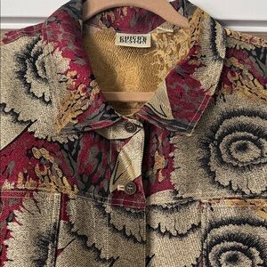 Chicos Design Silk Blend Sunflower Jacket Womens 3/XL Button down Art to Wear