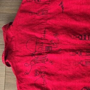 Chico's Design Silk and Linen Blend African Print Button Down in excellent pre-owned condition. No stains or wear.
