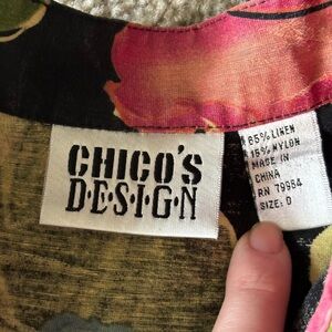 Chico's Design Size 0 Madarin Collar Lightweight Shirt Jacket Linen Blend Floral