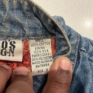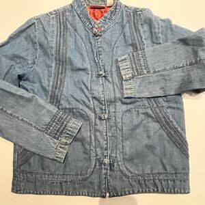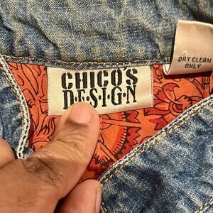Chicos Design Size 0 Small Denim Jean Jacket Blue Silk Lined Knots