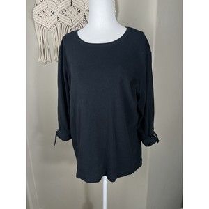 Chico's Design Size 3 (16) Black Long Roll Tab Sleeve T Shirt Heavy Cotton Blend