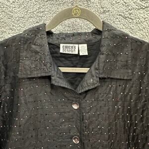 Chico's Design Size 3 (XL) 100% Silk Black Jacket Colorful Beads Lined ButtonUp