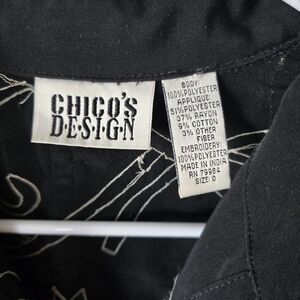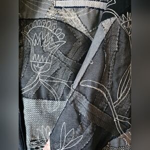 Chico's Design Sz 0 Small Jacket Embroidered Quilted Patchwork Granny Black Boho