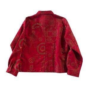 Chico's Design Sz 3 Red Long Sleeve Button Up Shirt Blazer Jacket Oriental Print. Good pre-owned condition.