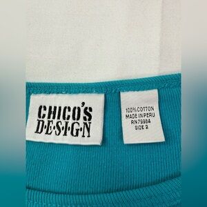 Chico's Design Turquoise Cotton Scoop Neck Cap Sleeve Tee Size Large