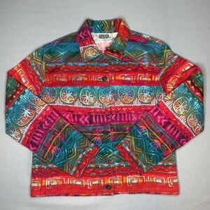 Chico’s Design Vintage Abstract Southwest Inspired Print 100%Cotton Denim Jacket