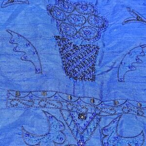 Chico's Design Vintage Royal Blue Silk Beaded Embroidered Blouse Size 1 / US 80
