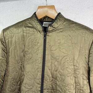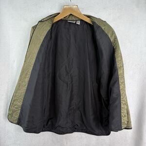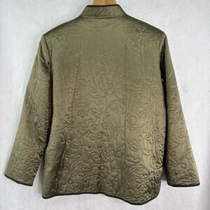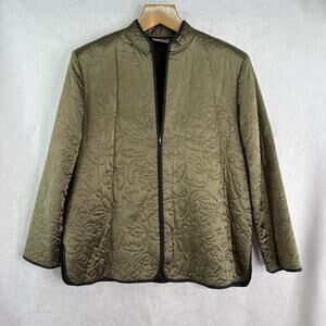 Chico's Design Vintage Sz 2 /L/14 Olive Lined Silk Embroidered Full Zip Jacket