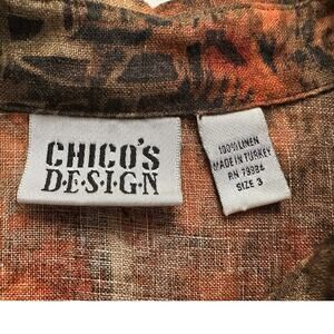 Chicos Design Vintage Sz 3, XL 100% Linen Button Up Blouse Aztec Southwestern