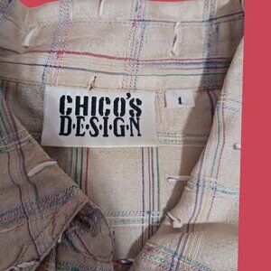 Chicos Design Vtg Beige Textured Button-Up Shirt Lightweight Women Size 1