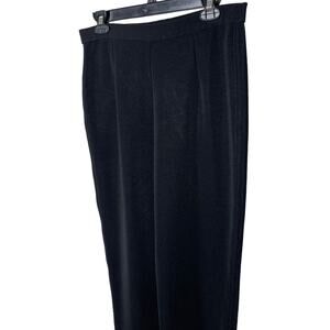 Comfy black stretchy pants, perfect for work, work functions, date night, night out, most any occasion. No pockets, looks to be a wider leg