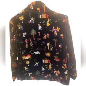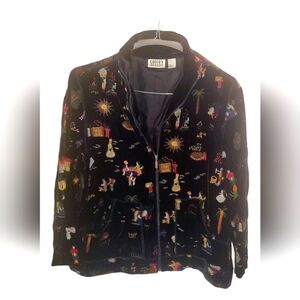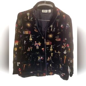 Chico's Design Women's Embroidered Multicolor Silk Blend Blazer Jacket Sz 1