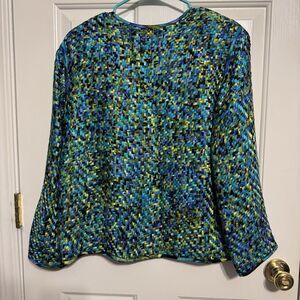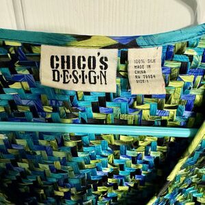 Chicos Design Womens Silk Jacket Blazer Sz 1 (M) Multicolor Basketweave Workwear