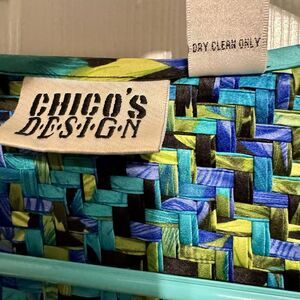 Chicos Design Womens Silk Jacket Blazer Sz 1 US 8 Medium Multicolor Basketweave Workwear