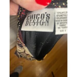 Chico's Design beaded abstract knit blouse size 3 Party holiday chic avant gard