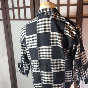 Chico's Design button down shirt abstract black&white check/plaid/100%silk/8or10