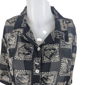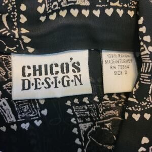 Chico's Designs Semi Sheer Face/Hearts Black/Tan Blouse 2 - M