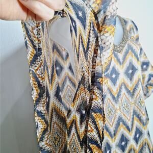 Chico's Diamond Print Poncho Shawl Beaded Sequins Sheer Small Medium Boho Top Flowy Topper