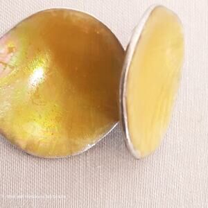 Chicos Disc Earrings Luminescent Yellow Enamel On SIlver Tone Concave Metal