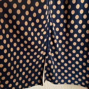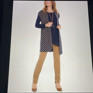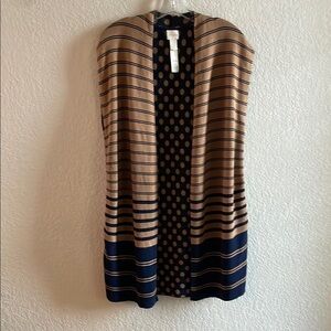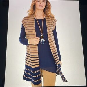 Chico’s Dot-Striped Reversible Cardigan Tunic Cap Sleeve Navy Camel Size 1