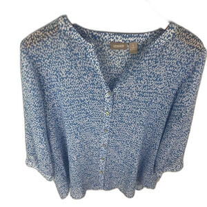 Chico’s light blue white dotted button-up blouse top size Chico's size 1 (equivalent to US Medium/8).
