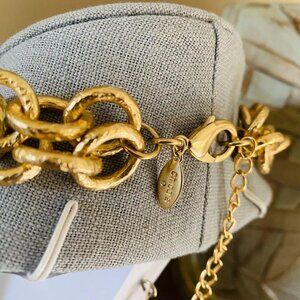 Chico’s Double Strand Textured Gold Link Necklace w/ Black Crystal Accents – 17”