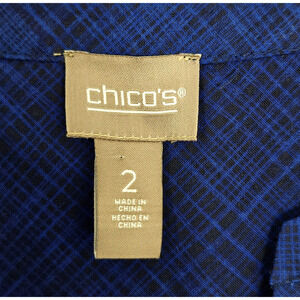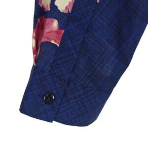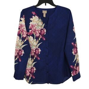 Chico's Drama Floral Button Front Top Size Large / 2 12/14 Blue Pink Long Sleeve