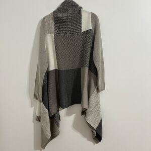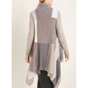 Chico's Drape Front Colorblock Cardigan Size 2P / US LP Beige Taupe Boho Knit