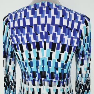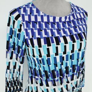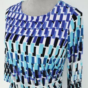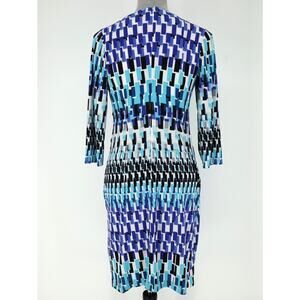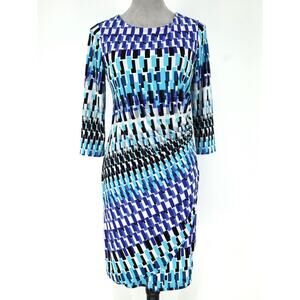 Chicos Dress 0 Women's 4 Small Blue White Stretch Knit Ruched on One Side Career Officecore Corpcore Office Siren