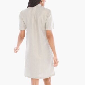 Chicos Linen Foiled Lace Up Shimmer Oatmeal Beige Shift Dress