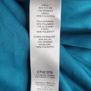 Chicos Dress Size 1 M 8 Green Blue Chevron Handkerchief Hem Sleeveless Knotted