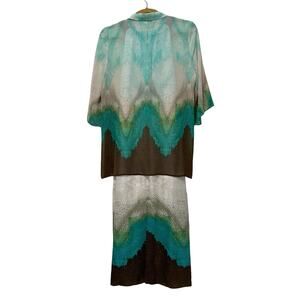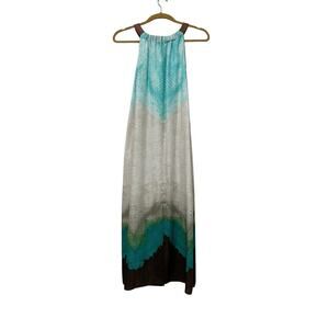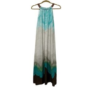 Chico’s Dress Sz 2 Tunic Sz 3 Set Faux leather halter Maxi Ombré Aqua Grey Brown