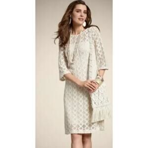 Chico's Dress Women 1 Medium Blue Solid Crochet Camille Enchanted Teal Disco