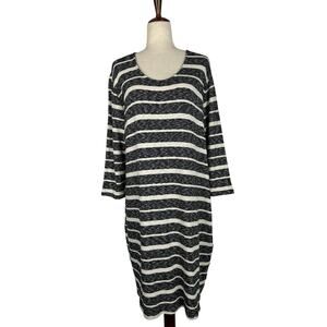 Chicos Dress Women Size 3 XL Black Stripe Knit Shift Midi Comfort Minimalist