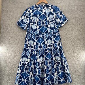 Chicos Dress Womens 1 US Medium Blue Printed Tiered Short Sleeve Notched Neck