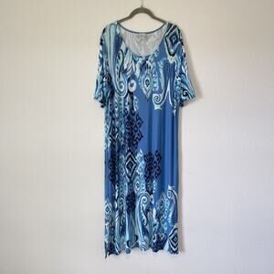 Chicos Dress Womens 3 US 16/18 Blue Aqua Paisley Ikat Print Stretch Short Sleeve