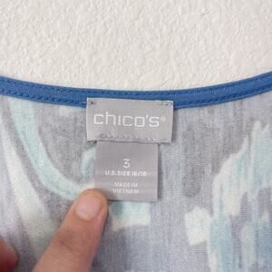 Chicos Dress Womens 3 16/18 Blue Aqua Paisley Ikat Print Stretch Short Sleeve