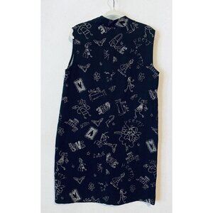 Chicos Dress Womens Large Black Doodle Art Silk Linen Sleeveless Shift Boho