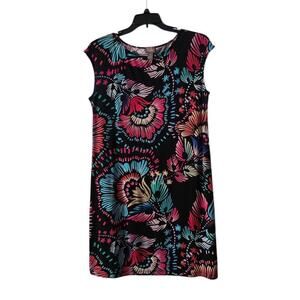 Chicos Dress Women's Size 2 is a LARGE/12 Black Floral Print Shift Sleeveless Multicolored