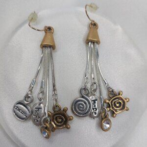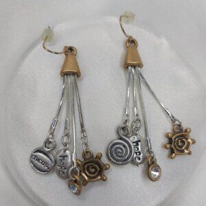 Chicos Drop Earrings "HOPE" Silver & Gold Tone Boho
