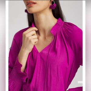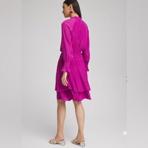 Chico’s Drop Waist Pleated Tier Dress Size 4 US 20 V Neck Smock Waist Violet