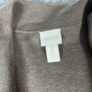 Chicos Duster Cardigan Women’s 3 US Large Brown Sweater Cotton Pockets